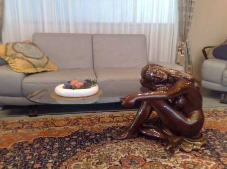 Statyn som håller i glasbordet ser ut att väga en del. Vikten är ganska oviktig när dragbilen är en fullstor lastbil. Däremot får man hoppas att inredningen är bättre förankrad än den ser ut att vara på bild.