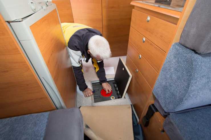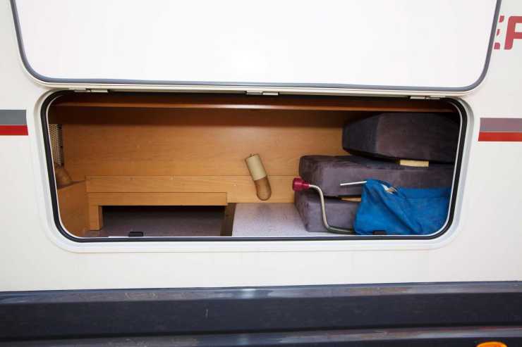 Gasolen förvaras i ett bra utrymme för två flaskor och det är lätt att hantera flaskorna i utrymmet som sitter på bilens vänstra sida ovanför bakaxeln.