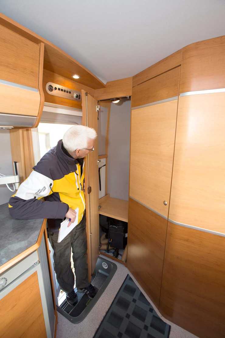 Fyra bältade platser finns och rejäl plats för detaljer som tv och multimedia. Över sittgruppen finns på bägge sidor rymliga överskåp. Tre uttag för 230 V men inte så gott om stuvutrymme som vi kanske hade hoppats på från början.