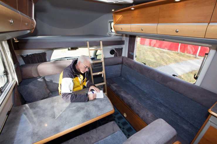 Backspeglarna är förlängda för att nå förbi påbyggnaden och är elmanövrerade. På vägen känns bilen stabil och ljudnivån är moderat, trots den relativ långa ”tuben” som bildar alkoven.