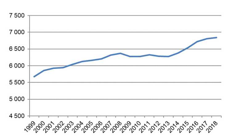 Total körsträcka för svenskregistrerade personbilar (miljoner mil). År 1999–2018.