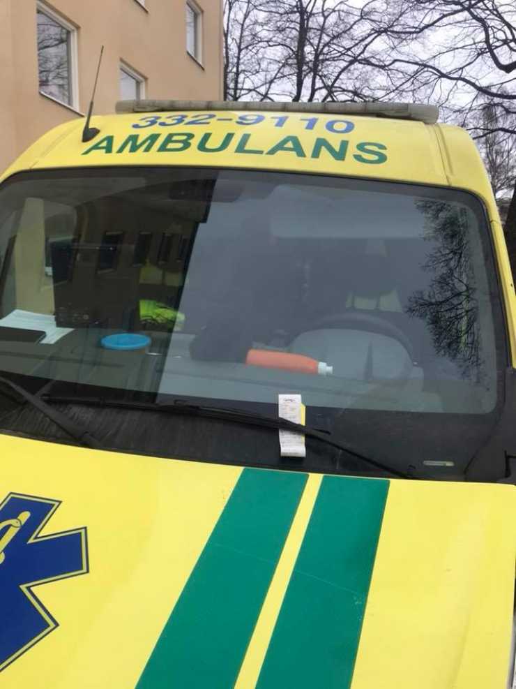 Idag var vi hemma hos en äldre människa med pågående bröstsmärtor. Vi parkerade ambulansen på en plats för att inte spärra av hela gatan. Under tiden vi tog hand om en rädd och sjuk människa tog ni er tiden att fota vår bil samt skriva ut en p-bot på 750kr för att vi ej betalt p-avgiften som krävs på denna parkering. Detta leder nu till att vi behöver betala denna bot samt lägga ner tid och ork på att överklaga denna p-bot.