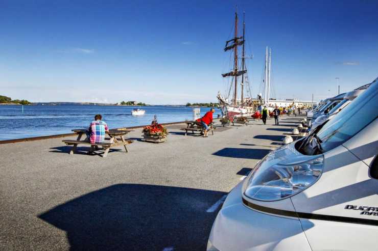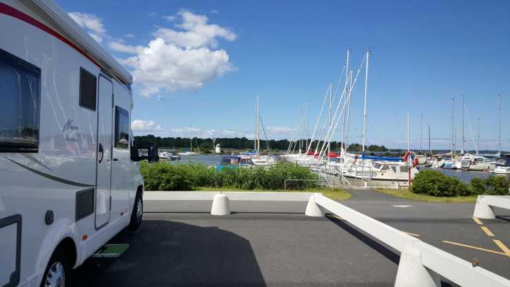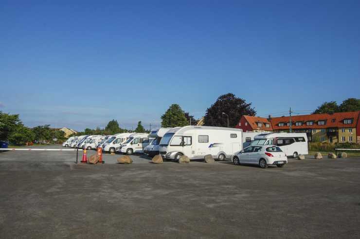 Parkering i anslutning till båthamnen inne i Ystad. Kostnad 150 kronor per dygn, betalas i automat eller på hamnkontoret. El tillkommer. Övrigt: Öppet från juni till 15 september. I hamnen finns restaurang, bastu, dusch och tvättmaskin samt tillgång till internet. Cirka 200 meter till centrum och 600 meter till turistbyrå. Kontakt: Hamnvärd, 070-2552932.