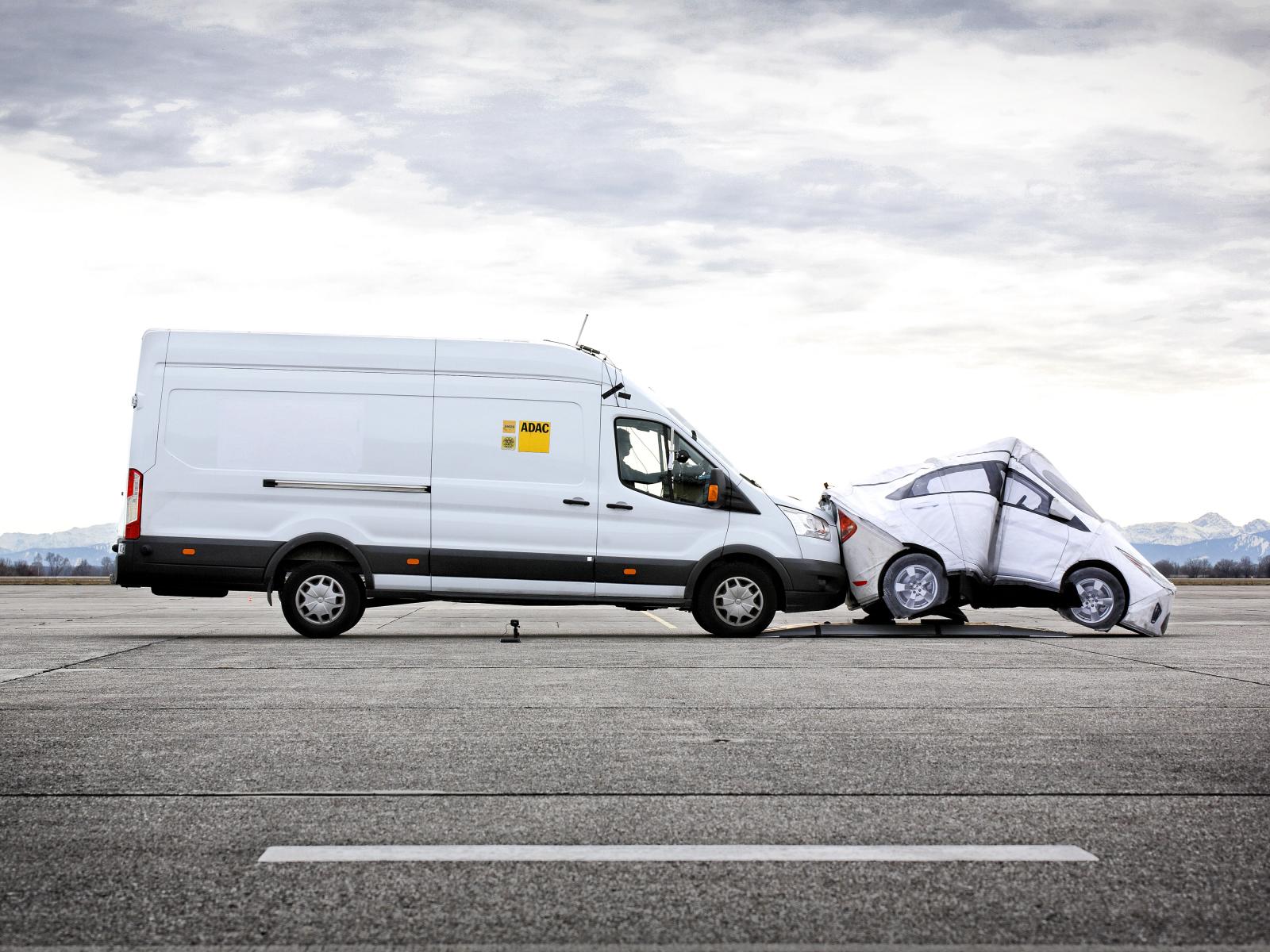 ADAC har testat hur autobromssystemet i transportbilen Ford Transit, vilken även används som basfordon till husbilar, reagerar på flera olika hinder med och utan last. Bilen reagerade på nästan alla olika typer av hinder, men resultatet är betydligt sämre än för motsvarande personbil som ofta ligger flera år före transportbilar när det gäller teknik och säkerhet. När det gäller husbilar bör dessa jämföras med en fullastad transportbil.