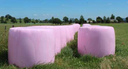 Trots att den färgade plasten kostar fem kronor mer per bal var böndernas intresse i fjol så stort att den rosa lasten sålde slut och troligen blir det samma sak i år trots att det nu finns två färger att välja på.