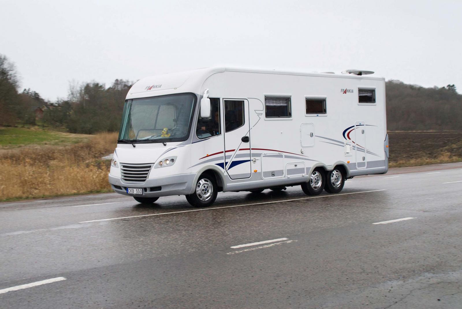 Kring halvmiljonen är utbudet av begagnade husbilar generellt sett gott. Vill man ha en stor bil strax under Linerstorlek med sex hjul, vad får man då? Vi hittade en Frankia med dryga 6 000 mil på mätaren.
