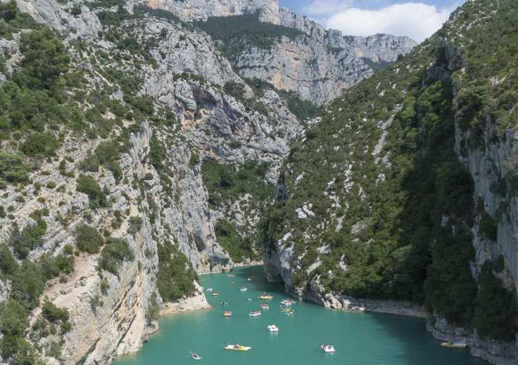 Det turkosfärgade vattnet kontrasterar vackert mot de ljusa och höga klipporna efter den 14 mil långa vägen som klänger sig fast efter klippkanten. Vi är i Europas Grand Canyon och det är oändligt vackert! Kanske vackrast i Europa till och med!