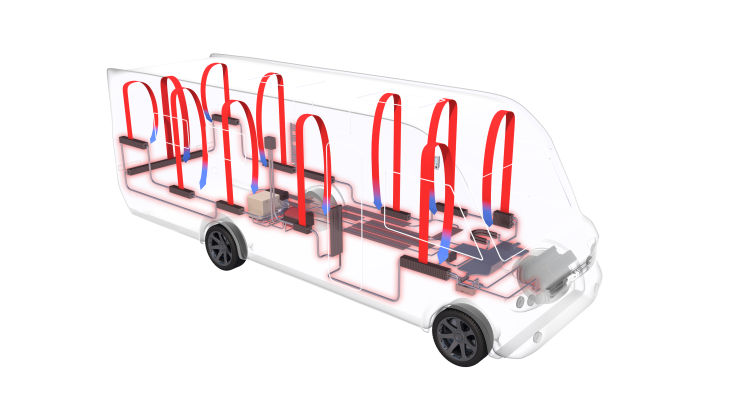 Det varma vattnet i värmesystemet leds genom husbilen.