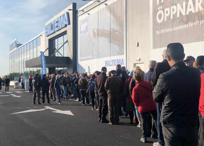 – Det här varuhuset har blivit försett med ett stort glasparti som ger ett fantastiskt ljusinsläpp. Vi har dessutom satsat extra mycket på inredningen i caféet. Trots att caféet är luftigt inrett finns det fortfarande mer ombonade ytor med växter, soffor och hyllor som bryter av och skapar en trivsam atmosfär. Vårt mål är ju såklart att kunden ska trivas hos oss, säger Adelina Voci, vice VD på Biltema.