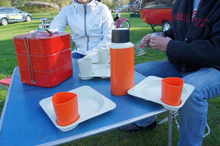 picknick-setet går inte helt i färgton med bilen, men det är snyggt ändå!