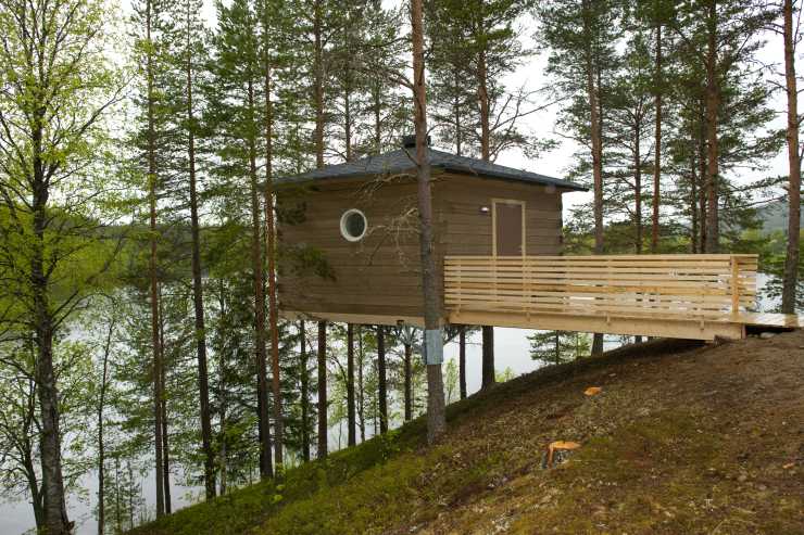 På campingplatsen Granö Beckasin finns fågelnästen högt uppe i tallarna med utsikt över Umeälven. Trädhusen har golvvärme, dusch, toalett och litet kök. Och den som vill kan beställa frukost direkt till boet. http://www.granobeckasin.com/