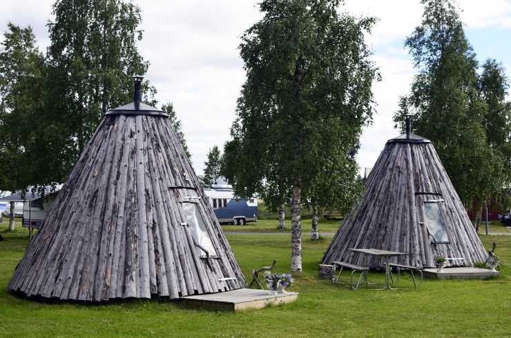 å Saiva Camping i Lappland finns traditionella lappkåtor att checka in i.