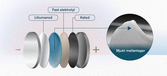 Mycket förenklat kan ett solid state-batteri liknas vid en torr macka. Ett lager av metallen litium fungerar som brödskiva och ovanpå läggs ett keramiskt ämne som fungerar som pålägg. Det hårda pålägget är batteriets fasta elektrolyt som ska transportera jonerna mellan batteriets plus och minuspoler. Den torra smörgåsen har inte bara svårt att hålla ihop på ett bra sätt, den bjuder också på allvarliga former av skav mellan bröd och pålägg. Ett stort antal forskare runtom i världen arbetar därför med att ta fram lämpliga mellanlager som kan förbättra egenskaperna, öka strömtätheten och höja säkerheten.