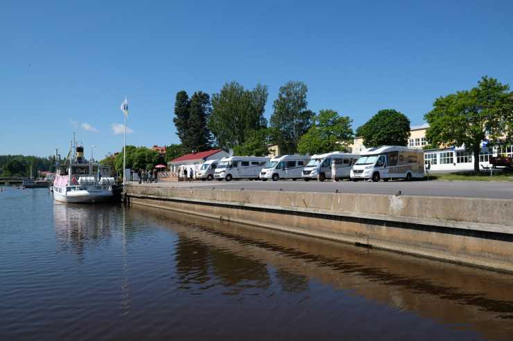 Ställplatsen är den mest centrala i Söderhamn och precis intill flyter Söderhamnsån. Turistbåten avgår precis framför. Platserna är på asfalterad yta och har markerade fickor.