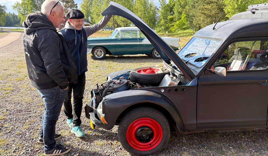 Jonas Petterson visar upp sin Citroën Acadiane på bilträffen utanför Kil.