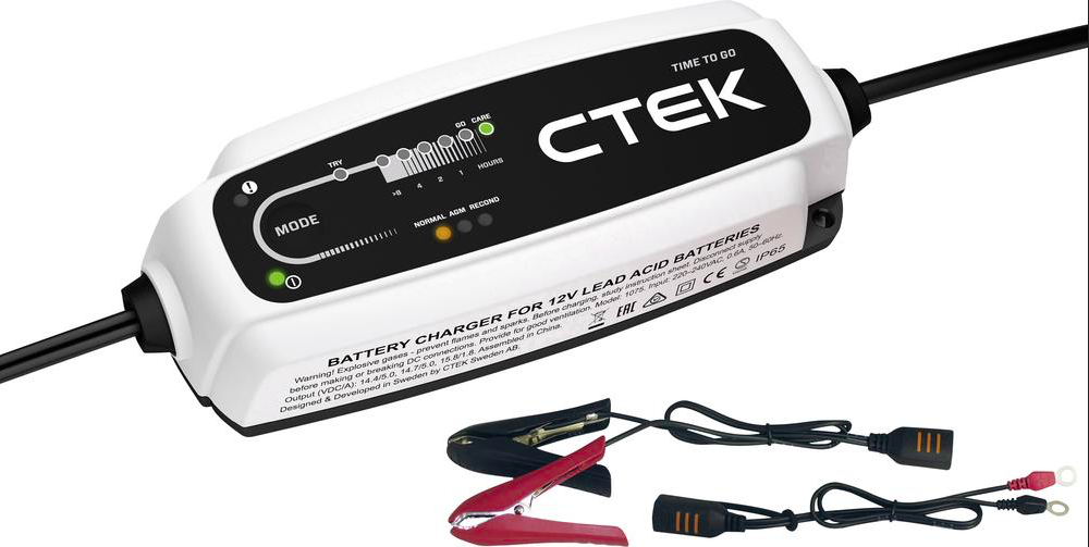 CTEK CT5 Time To Go laddar, underhåller och konditionerar alla typer av tolvvolts blysyrabatterier som Wet, Calcium, GEL, AGM och EFB, där de två senaste används i bilar med den krävande start-stop-tekniken. Laddaren är helt automatisk, gnistsäker, fasskyddad och har fem års fabriksgaranti. Prisnivån ligger på tusen kronor.