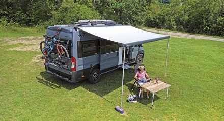 Tältet kopplas till bakluckan och mörkläggningsgardiner finns till alla fönster för bättre sovkomfort. Sov-kitet är en säng på 130x190 cm med en 220 liters förvaringslåda under som kan dras ut.