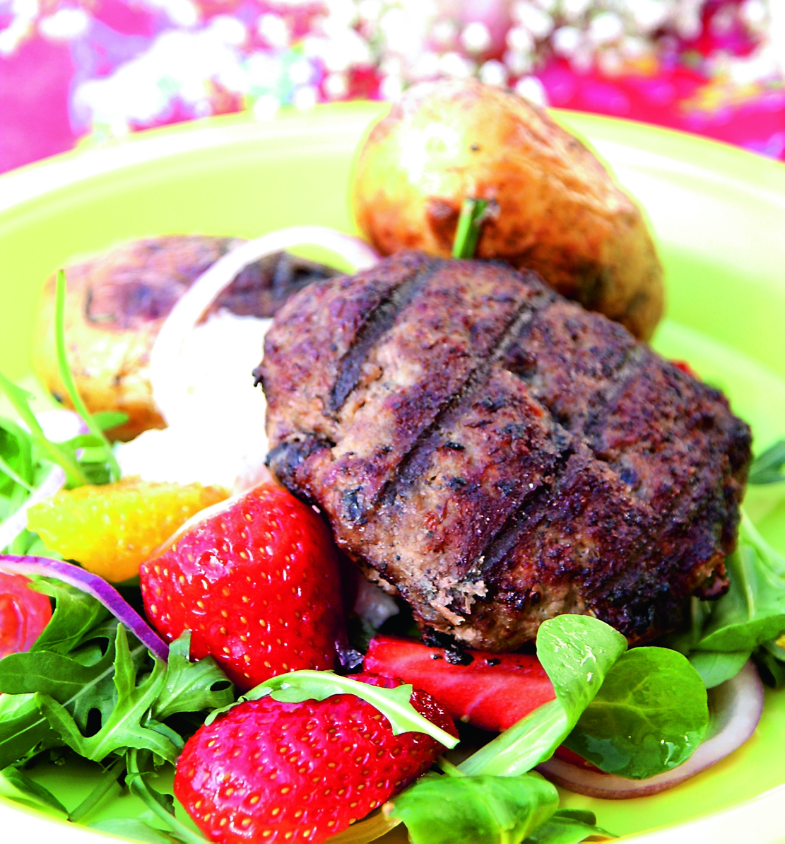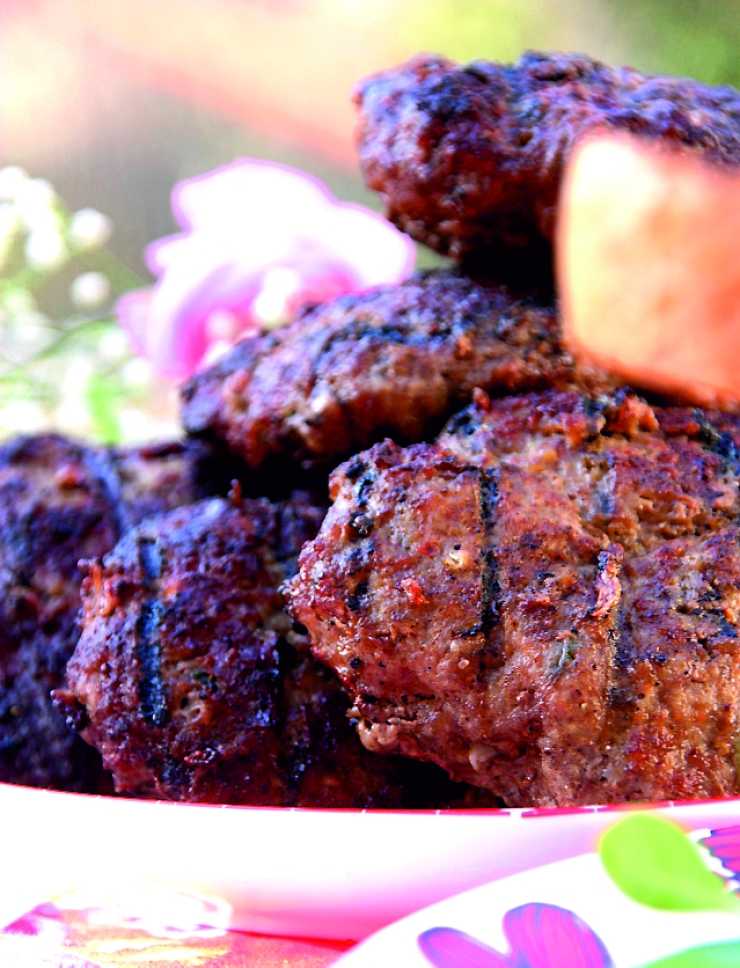 Blanda alla ingredienser, utom salt. Rör till en slät smet. Smaka av med salt och forma till burgare. Pensla ytan med olivolja innan de läggs på grillen.