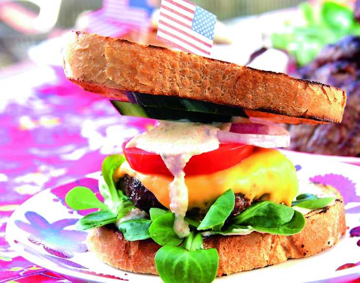 Vitlöksdoftande Holy Cow burger i nygrillat bröd.
