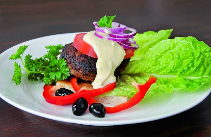 Blanda färsen med de övriga ingredienserna enligt ovan. Stek dem gyllenbruna. Stek två skivor toast, lägg på sallad i botten, sedan och pannbiffarna och en rejäl matsked bearnaise.