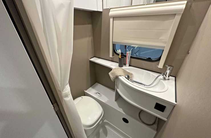 - Sex personer kan få plats om man väljer maximalt antal bäddar och det känns väldigt trångt. Dinetten rymmer på sin höjd fyra, ganska små, personer och det finns inte mycket svängrum. Det sagt, äter och lever man ju mest ute under sommaren.
