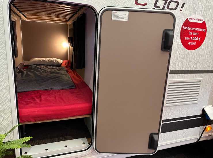 Dethleffs c’go 495 QSK måste vara en dröm för alla barn. För vilken unge vill inte ha en egen ingång till sitt krypin?