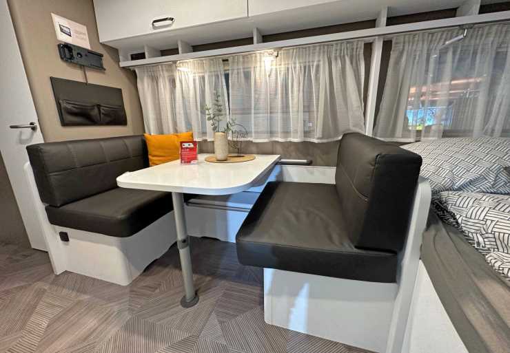 - Grundfärgen i c’go-modellerna är vitt, med grå väggar. Vitt är en neutral färg som skapar rymd, men den gör också att smuts och slitage syns extra mycket. De vita detaljerna i vagnen jag tittade i var redan fulla med svarta märken efter besökare som stött i. Så det gäller att vara tolerant mot den sortens skavanker – annars blir det mycket jobb med att hålla fräscht. Och det är väl sånt man vill undvika på en husvagnssemester?