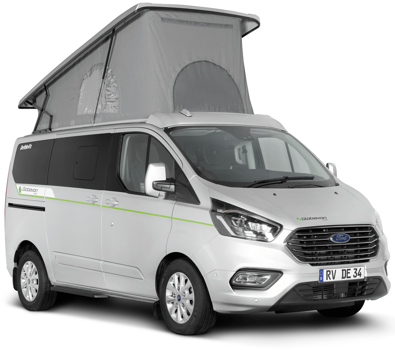 Globevan e.hybrid är en 497 centimeter lång mini-campervan baserad på Ford Custom med fyra sovplatser vilket gör att den kan kategoriseras som en äventyrsbil lämplig för kortare turer i närområdet men kan även användas som transportbil i vardagligt bruk då inredningen kan anpassas. Bredden utan speglar är 198 och höjden 209 centimeter. Ståhöjden anges till 139 men ökar till 244 centimeter vid B-stolpen (skjutdörren) när taket är uppfällt. Totalvikten är 3 240 kilo och tjänstevikten 2 830 vilket ger en lastkapacitet på 410 kilo.