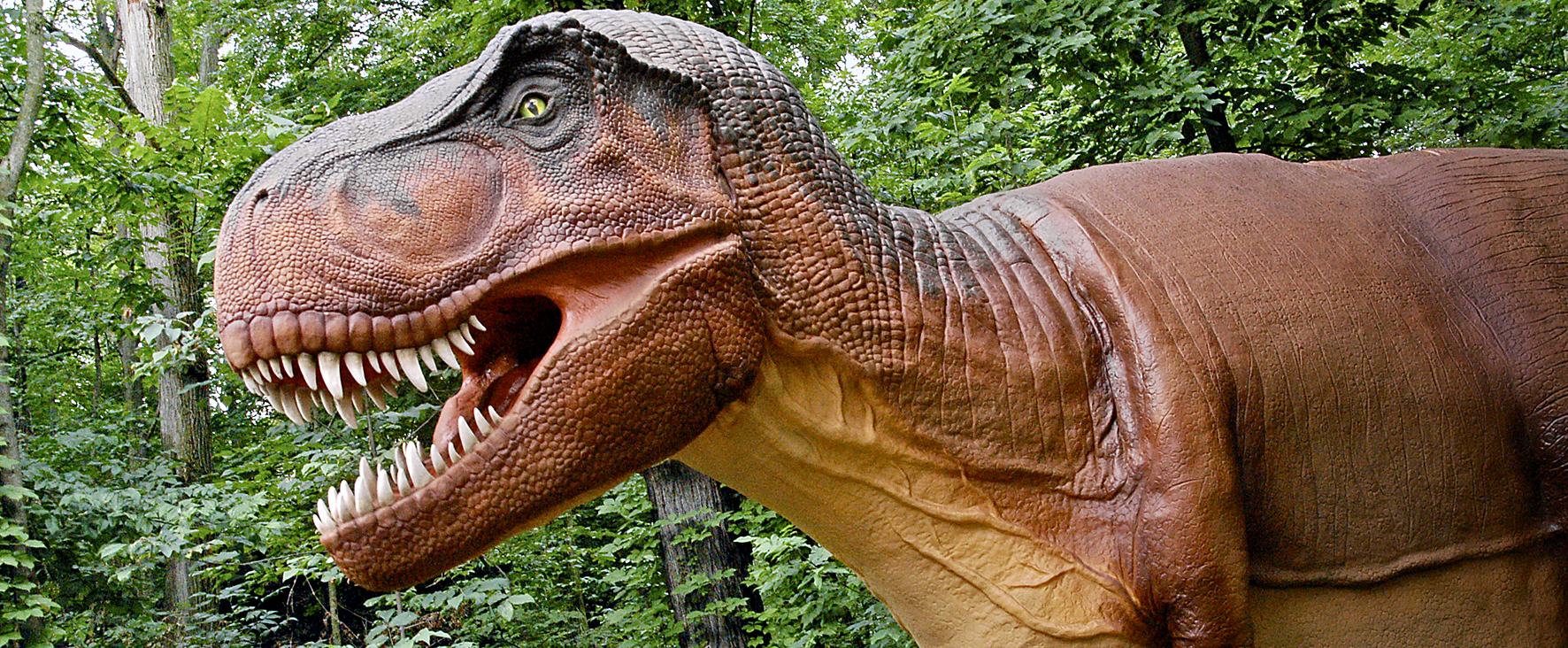 De tretton dinosaurierna representerar olika arter från olika tidsepoker och visas upp för besökarna i de olika uppväxtfaser som forskare upptäckt dem i. Den längsta dinosaurien, Tyrannosaurus Rex, är tretton meter lång. Den högsta är Brachiosaurus och är sex meter hög.