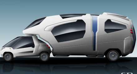 Framtidens mobila boende utmanar designers till att utforma alltmer spännande, om än lite verklighetsfrånvända, lösningar. Den här designlösningen går ytterligare ett steg med sitt speciella tänkande att kunna "packa ihop" husvagnen under transporten. Att kunna använda bilen separat och ändå ha en bodel som mer liknar dagens husbilar verkar vara ett genomgående tema från allt fler konceptfordon. Det går alltså tvärtemot den verkliga utvecklingen vi ser i försäljningsstatistiken även om det inte heller rakt av att jämföra stilstudier som denna med dagens husvagnar.
