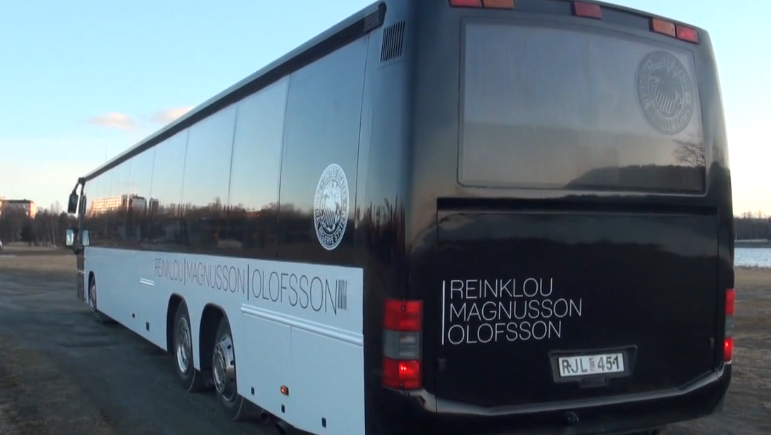 Det snygga bygget innehåller en rad smarta detaljer som säten som går att vrida runt och ställa i alla riktningar, längs med bussen, framåt eller bakåt. Även TV-fästet för 42-tumsskärmen går att vrida och vända på för att gömma undan den när den inte används. Köket har både kyl och frys, micro och en rejäl spis. Allt specialbyggt förstås, för som en av ynglingarna säger, det finns inga raka linjer i en buss.