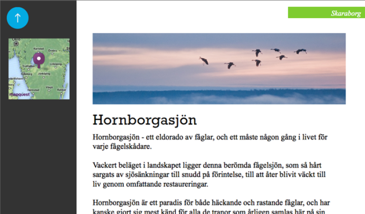 I appen hittar du artiklar från runt om i Sverige som ska inspirera till besök och upptäckarlust. Du kan också orientera dig direkt på karten i appen, filtrera på kategorier samt läsa om besöksmål och sevärdheter. Perfekt att ha med på vägarna när du inte riktigt vet vart du vill åka. Den här versionen av appen är enbart på svenska, men den kommer att finnas på ytterligare nio språk. I slutet av sommaren släpps appen även till BlackBerrys telefoner, och senare i år kommer den komma ut till iPad,iPhone och Android.