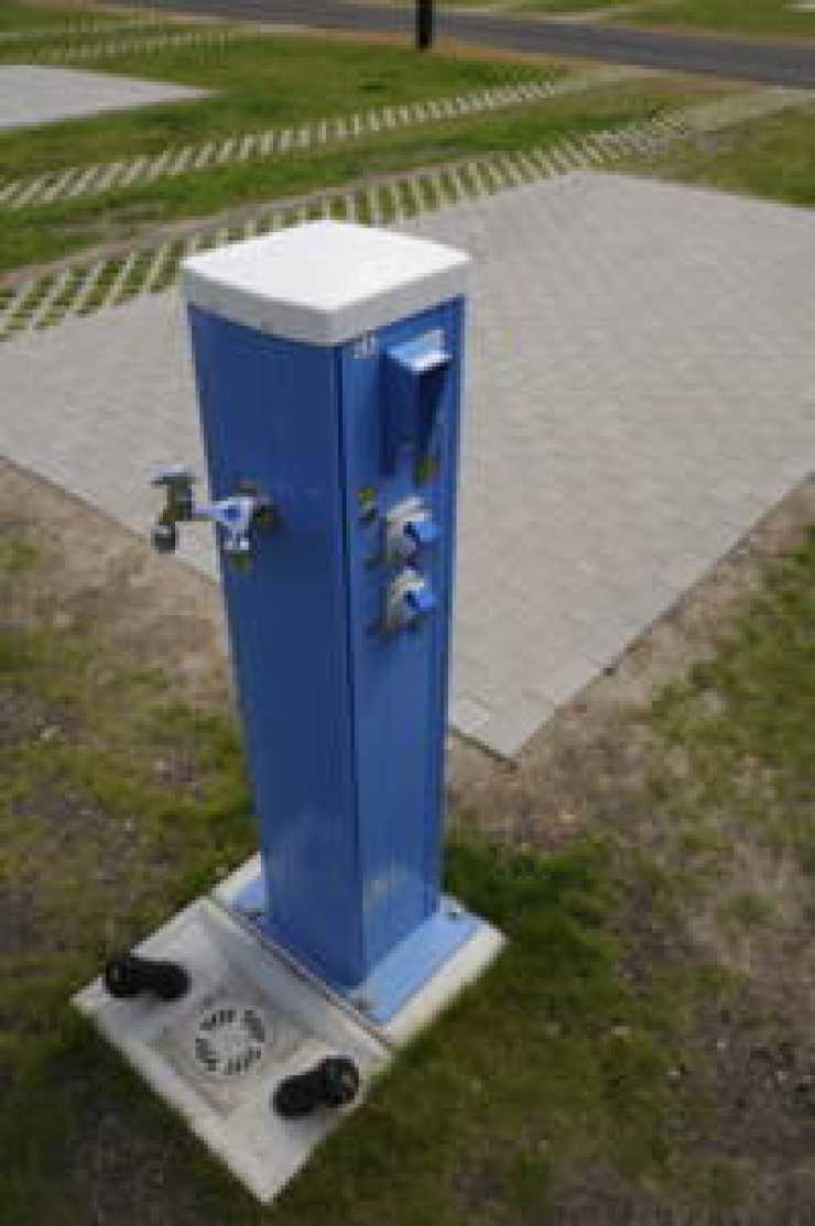 Möjligheterna till påfyllning av färskvatten och tömning av gråvatten/toalettank kan göras mycket enkla. Viktigt är att "serviceplatsen" är lätt tillgänglig, och att trafiken till och från denna inte stör övriga gäster onödigtvis.