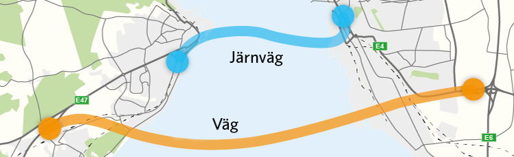 Utredningen har sett över möjligheterna både för vägförbindelse och för kombinerad väg- och järnvägsförbindelse för persontrafik.