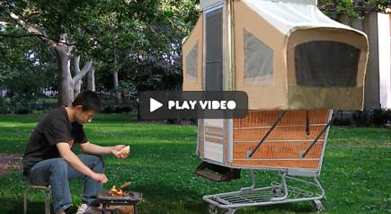 Denna fullständigt galna camper passar till kundvagnen. Kanske något för våra största köpcentrum att satsa på för att underlätta livet i kassaköerna.