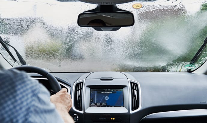 – Många förare tycker det är obehagligt att köra under häftiga skyfall. Fords tidigare versioner av automatiska strålkastare och vindrutetorkare har nu utvecklats med hjälp av ny teknik, som gör det lättare för föraren att hantera stora mängder nederbörd, säger Thorsten Warwel på Ford.
