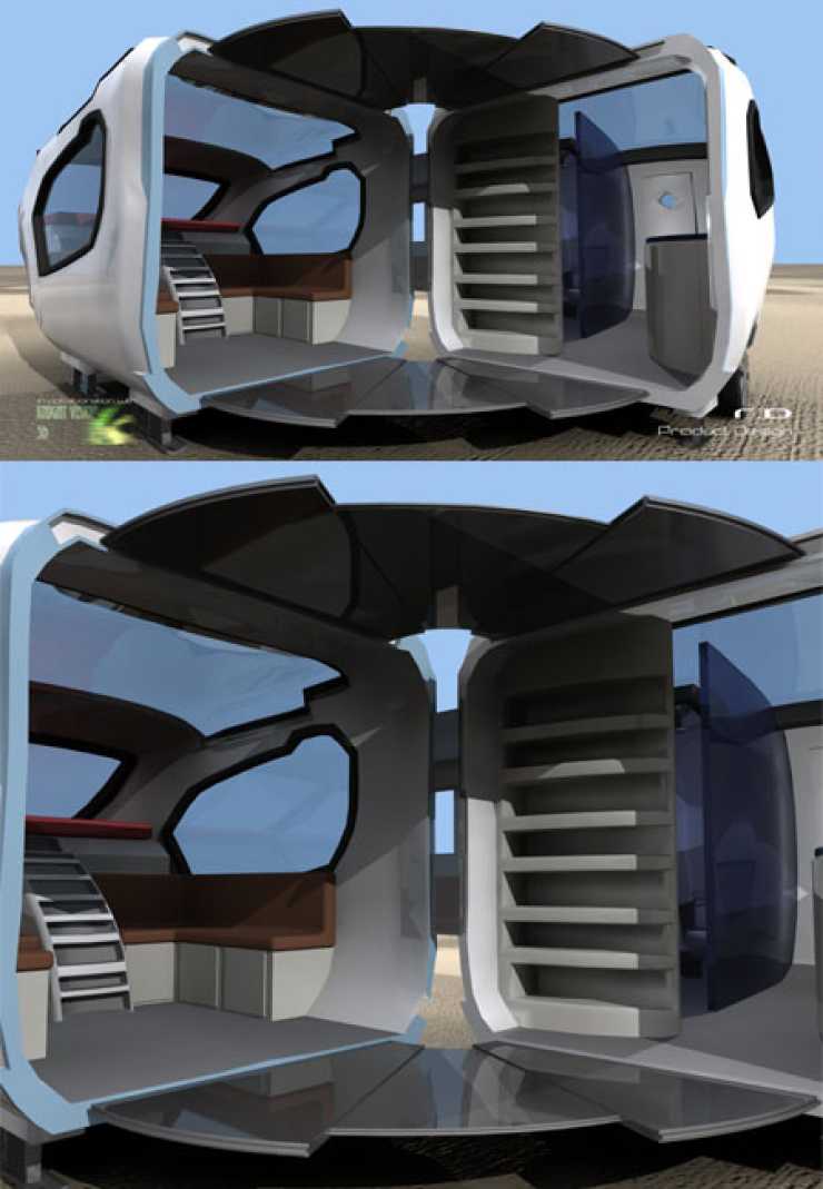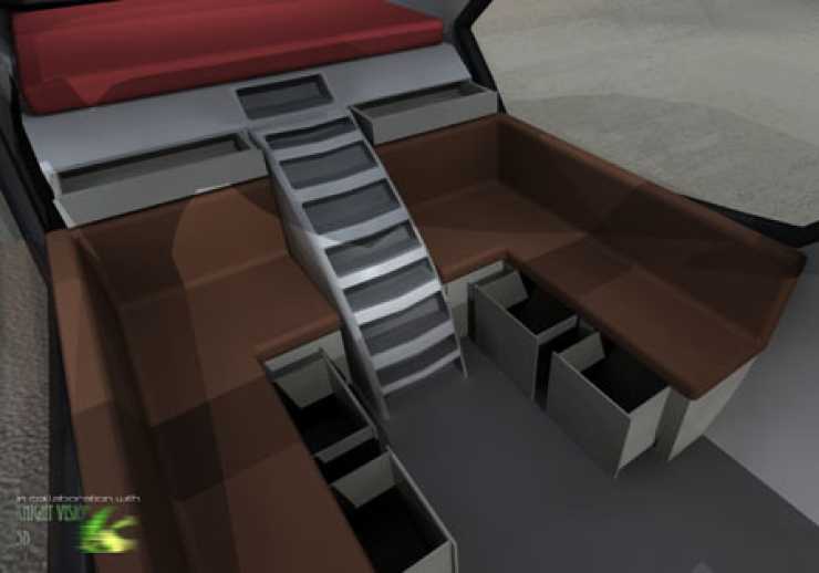 Tar man en titt i interiören visar sig en vagn som är lätt att anpassa till var och ens personliga tycke och smak. Konstruktörerna framhåller att utrymmena inuti är större än vad utsidan ger sken av.