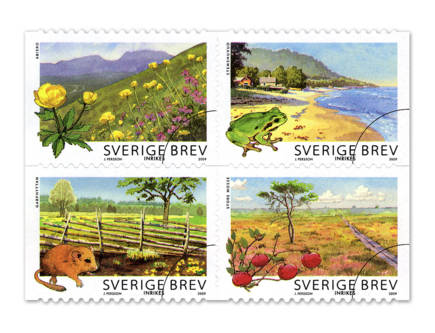 Posten ger den 14 maj ut nya frimärken för sommarens alla hälsningar från semesterresan, badstranden eller hängmattan. Motiven är hämtade från fyra nationalparker samt Sveriges första marina nationalpark.