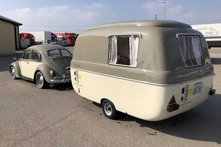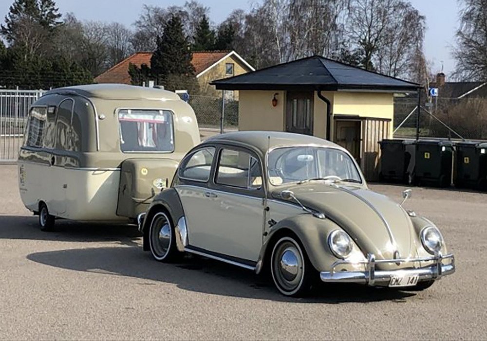 Men ändå, det riktiga påskgodiset är husvagnen som importerats från Holland medan det fortfarande var möjligt! Det är en italiensk vagn som heter Graziella Levante, nog kan man säga att namnet låter passande? Dessutom är den lackad i samma färger som Folkan så de passar perfekt ihop och väcker berättigad uppmärksamhet var ekipaget än dyker upp, så det är inget för dig som vill leva livet lite mer diskret.