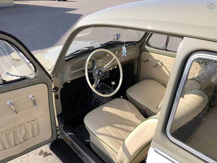 Folkvagnen från 1966 beskrivs i annonsen som att vara i bra skick och motorn har fått dubbla förgasare vilket ger lite extra effekt, sådär 100 hästkrafter vilket ger en toppfart på 100-110 enligt säljaren. I övrigt behöver Bubblan knappast någon närmare presentation, möjligen att hans vän som är billackerare lackat den i beige och creme, att den är försedd med däck som har vita sidor och att den matchande inredningen ser ut att vara i utmärkt skick. Helt enkelt en liten godbit som säkert skulle smaka gott så här inför påsk.