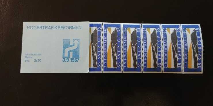 estetiska hänsyn och kommittéhanteringen gjorde att formgivaren helst inte ville kalla H-et för sitt. Kanske någon drar sig till minnes det breda frimärket med dåtidens brevporto på 35 öre. Frimärkena i extra brett och uppmärksamhetsinriktat format var riktigt snygga, nästan suggestiva med en stiliserad fordonstom evighetsraka, ritad av konstnären Pierre Olofsson. Idag startar budgivningen på Tradera på 500 kronor men då innehåller häftet tio stycken av dem. Är vi elaka påstår vi att på den tiden kom posten fram för 35 öre. Mer tveksamma i dagens värld kanske H-trosorna var (jo, sådana fanns, även kalsonger) vilka kan sägas höra till de lite smalare kommunikationssätten. Annars var det spel, bilkuddar, nålar till kavajen och allt möjligt. Inte minst var det samtalsämnet vartän man träffades och började byta några ord med någon. För man behövde träffas. Telefonen satt fastskruvad i väggen hemma i hallen där man inte alltid var.