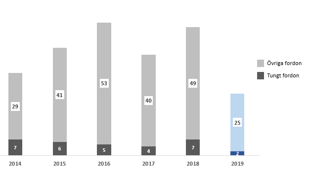 Den första uppföljningen av olycksstatistiken efter att omkörningsförbudet och de ändrade dispensreglerna för långsamtgående mobilkranar infördes i mars visar nu på ett positivt resultat. Antalet olyckor, varav de flesta är så kallade upphinnandeolyckor, har halverats jämfört med samma period förra året.
