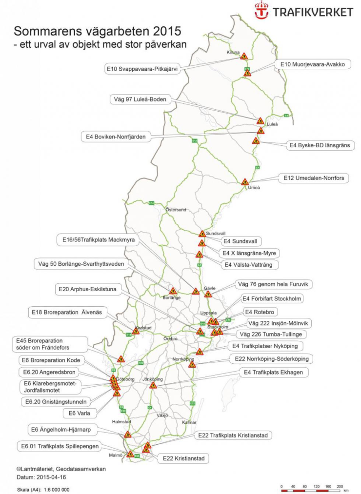 Som bild till höger finns en nationell sammanställning med karta över vägarbeten som kommer att påverka trafikanterna i högre grad. Där är även sommarens vägarbeten i respektive län listade. Den länsvisa förteckningen redovisar inte allt som görs på vägarna i sommar. Trafikverket gör betydligt mer.