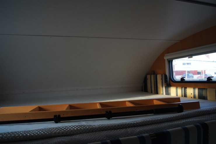 När det kommer till sovplatserna så kan två personer sova i alkoven, man bäddar för två personer mellan dubbelsätena, samt en kortvuxen kan ligga i den smala soffan längsmed vänstersidan. Detta ger totalt fem sovplatser. Men om man inte är alltför storvuxen, kan två vuxna sova i dubbelsätena, och då har man möjlighet att låta tre barn sova i alkoven, vilket ger sovmöjlighet åt alla sex.
