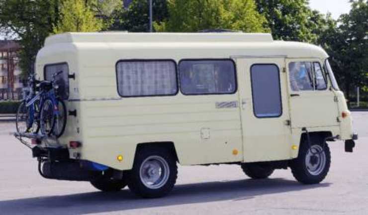 Husbil med familj från Tyskland på genomresa i Sverige.