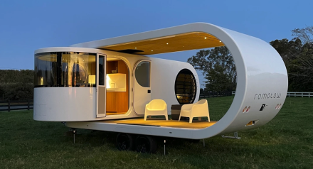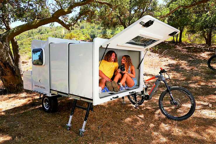 Hitch Hotel Traveler är en liten utdragbar sovkupé från Kalifornien. Dragen bakom en bil är vagnen minimal och undanställd i ett garage är den ännu mer anonym. Detta i och med att dragstången kan fällas upp och ekipaget mest liknar en låda på hjul.