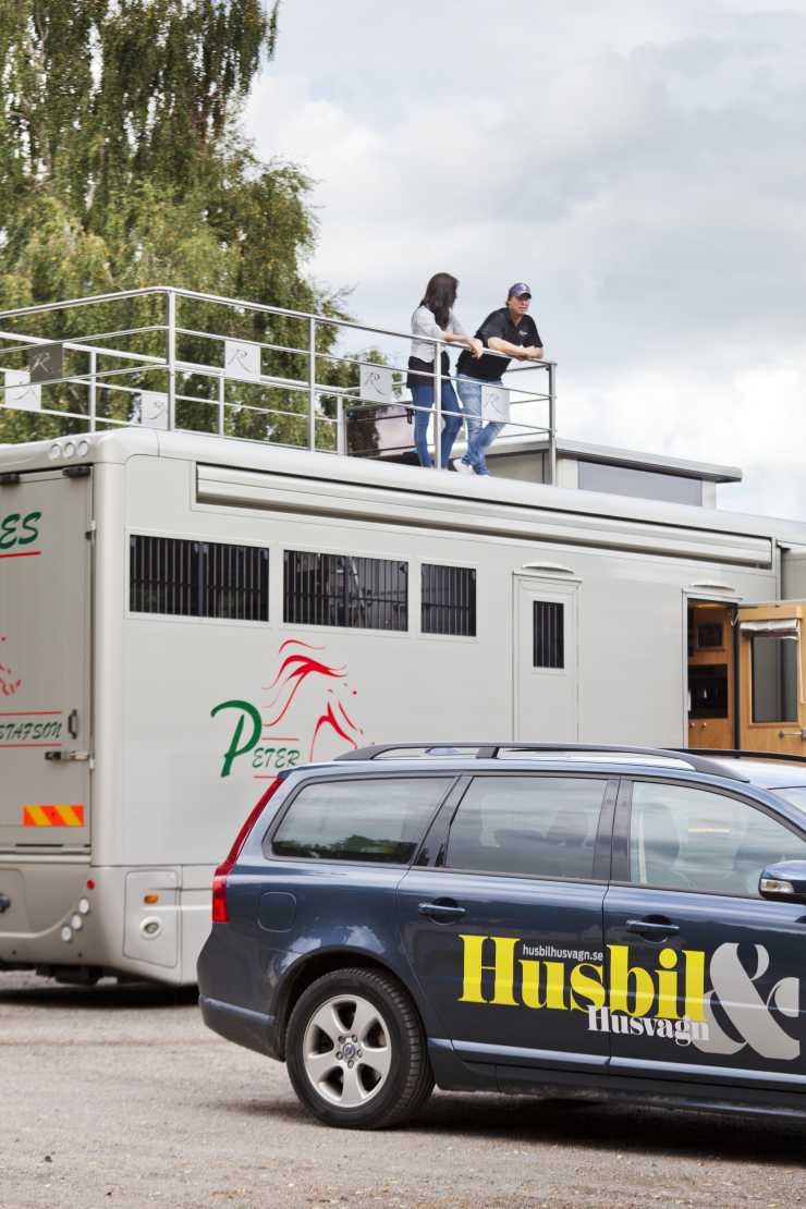 Husbilen är unik i sitt slag och har under sommaren visats upp både i Sverige på Falsterbo Horse Show och nere i Tyskland, men Peter har även haft tid att komma iväg på tävlingar. När vi besöker Peter håller han på att förbereda för en tävling i Tierp dit tre hästar och fyra man ska med.