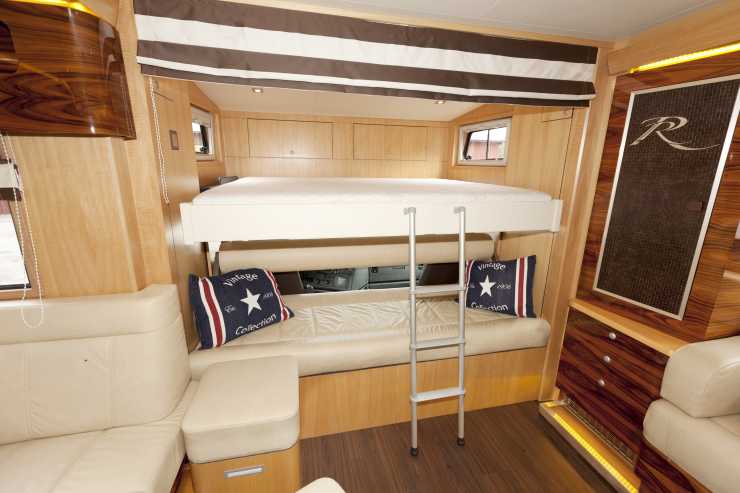 Ihop med hästdelen finns det två sängplatser i ett hydrauliskt uppskjut. Där finns två tv-apparater med DVD och ett skynke gör det möjligt att avskilja sovplatserna från varandra. I uppskjutet finns det även luftkonditionering och nödutgång upp mot taket.