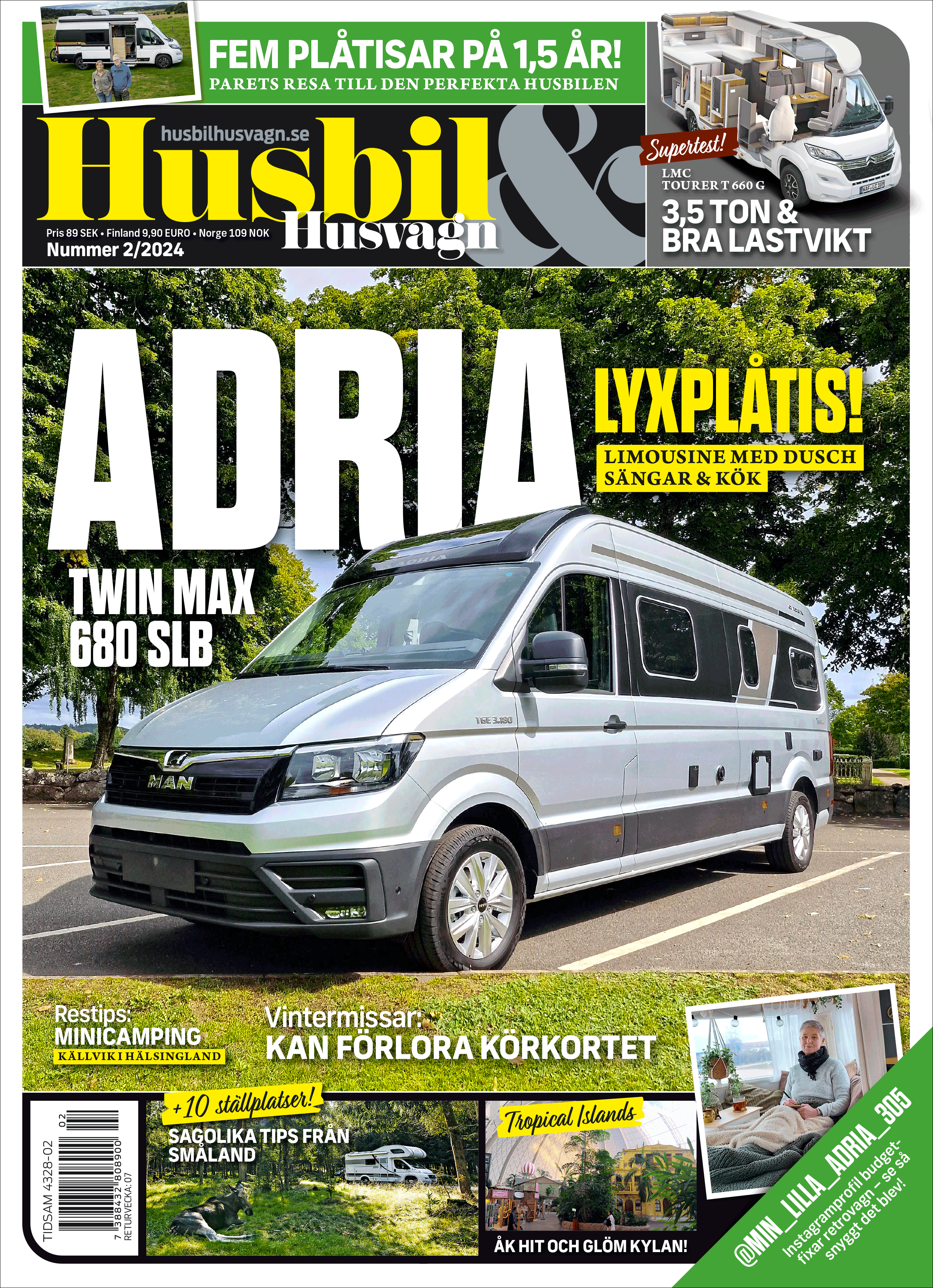 ✔ Resa: Stort tropiskt badparadis utanför Berlin ✔Supertest: LMC Tourer T 660 G ✔Test: Adria Twin Max 680 SLB ✔Möt paret: 5 plåtisar på 1,5 år ✔Succévagnen: Cajsas renoverade Adria ✔Och mycket mer