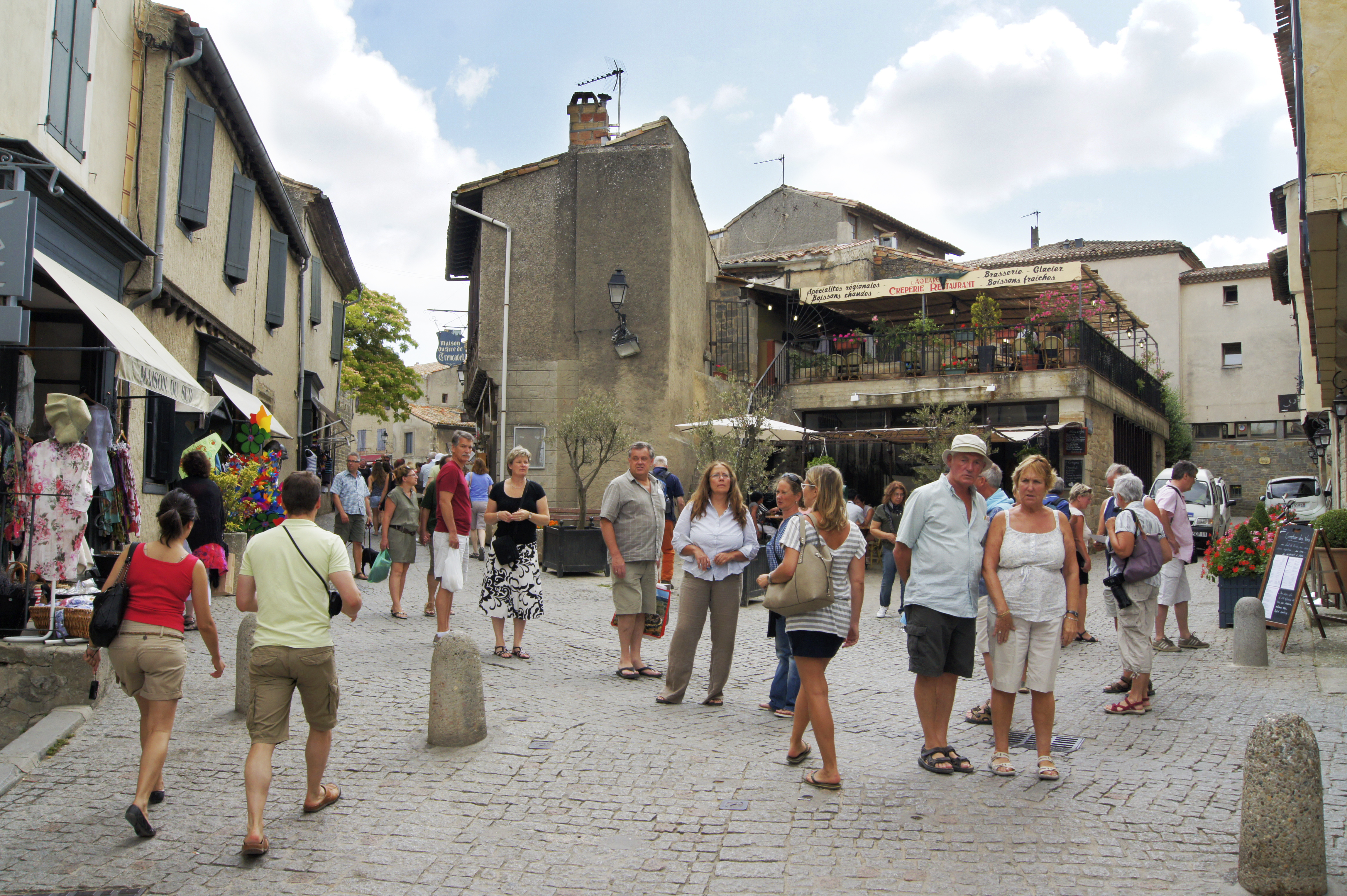 Det är sent på kvällen i juli. Vi är på väg mot Medelhavet och har passerat Bordeaux och Toulouse utan att göra några avstickare. På slätten syns plötsligt en gammal fästningsstad i fjärran, spektakulärt upplyst av starka strålkastare. Konturerna som avtecknar sig mot den sammetssvarta himlen är imponerande.